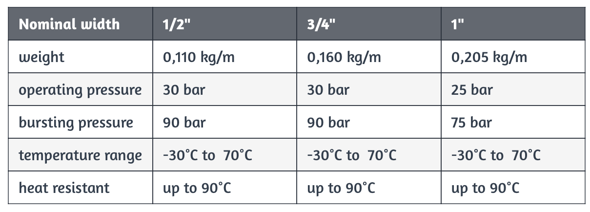 | heat resistant | up to 90°C | up to 90°C | up to 90°C |